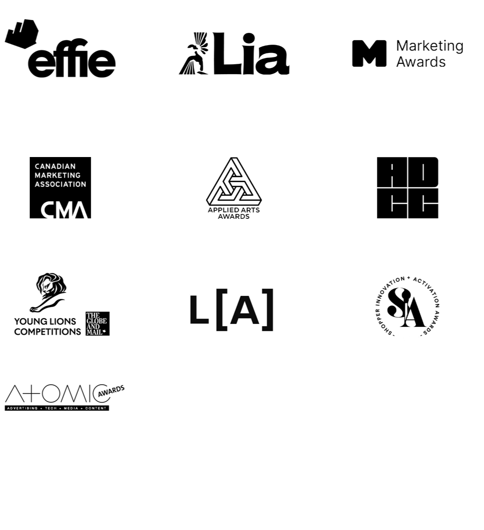 Ruffles, Fanta, Hellmann’s, Absolut, JP Wiser’s, Pizza Hut, Dove, IKEA, P&G, TD Bank, Bell, Clif Bar, Earls Kitchen + Bar Restaurants, Coors Light, Canada Bread (Dempster’s), Maple Leaf Foods, BMW, Canada Dry Ginger Ale, MAC Cosmetics, Meridian Credit Union, Art Gallery of Ontario, yellow tail wine, Santa Margherita Tenderflake, Chartwell Retirement Residences, Fix Auto, Toronto School of Art, EQ Bank, Best Buy, Infiniti, Golf Town, Ministry of Finance, Ministry of Labour, etc.