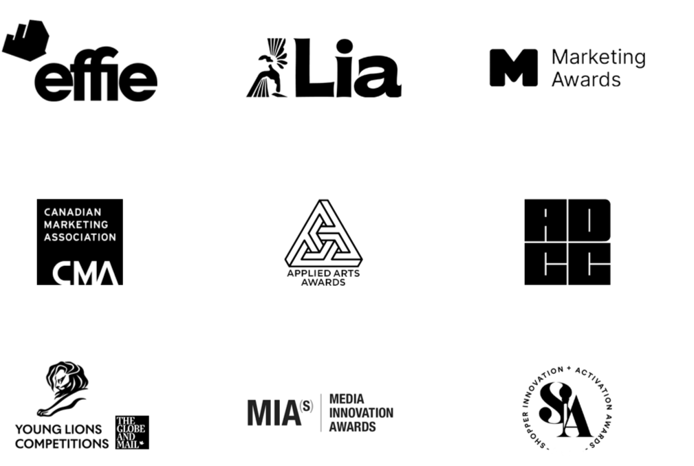 Ruffles, Fanta, Hellmann’s, Absolut, JP Wiser’s, Pizza Hut, Dove, IKEA, P&G, TD Bank, Bell, Clif Bar, Earls Kitchen + Bar Restaurants, Coors Light, Canada Bread (Dempster’s), Maple Leaf Foods, BMW, Canada Dry Ginger Ale, MAC Cosmetics, Meridian Credit Union, Art Gallery of Ontario, yellow tail wine, Santa Margherita Tenderflake, Chartwell Retirement Residences, Fix Auto, Toronto School of Art, EQ Bank, Best Buy, Infiniti, Golf Town, Ministry of Finance, Ministry of Labour, etc.